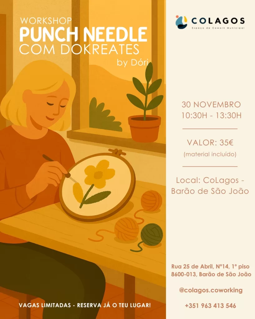 This coming Sunday, 30 November, CoLagos in Barão de São João will host another creative activity designed especially for the local community: the “Punch Needle” workshop, led by Dokreats, well-known for her handcrafted work and the inspiring way she shares this textile technique.